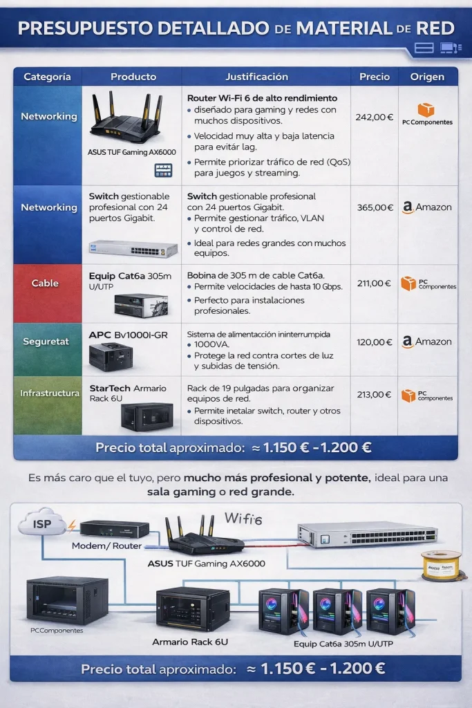 Segons la informacio que m’ha donat la companya sobre els materials que necesiterem, li he demanat a la IA que em fes una esquema amb informacio del prossupost detallat tot el material necessari.