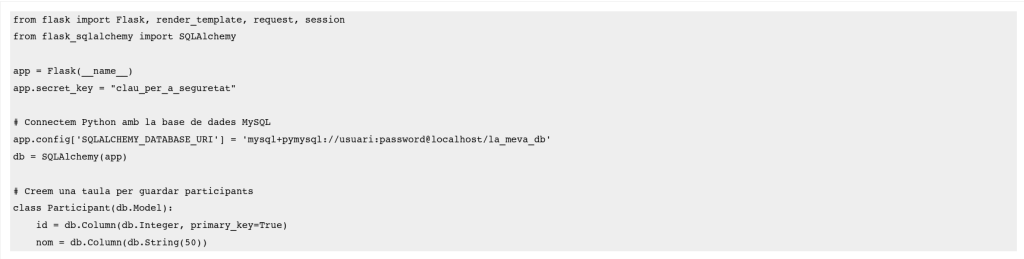 Inicialment, funcionava perquè el portàtil de l’escola no permetia instal·lar flask-sqlalchemy. L’error era: ModuleNotFoundError.